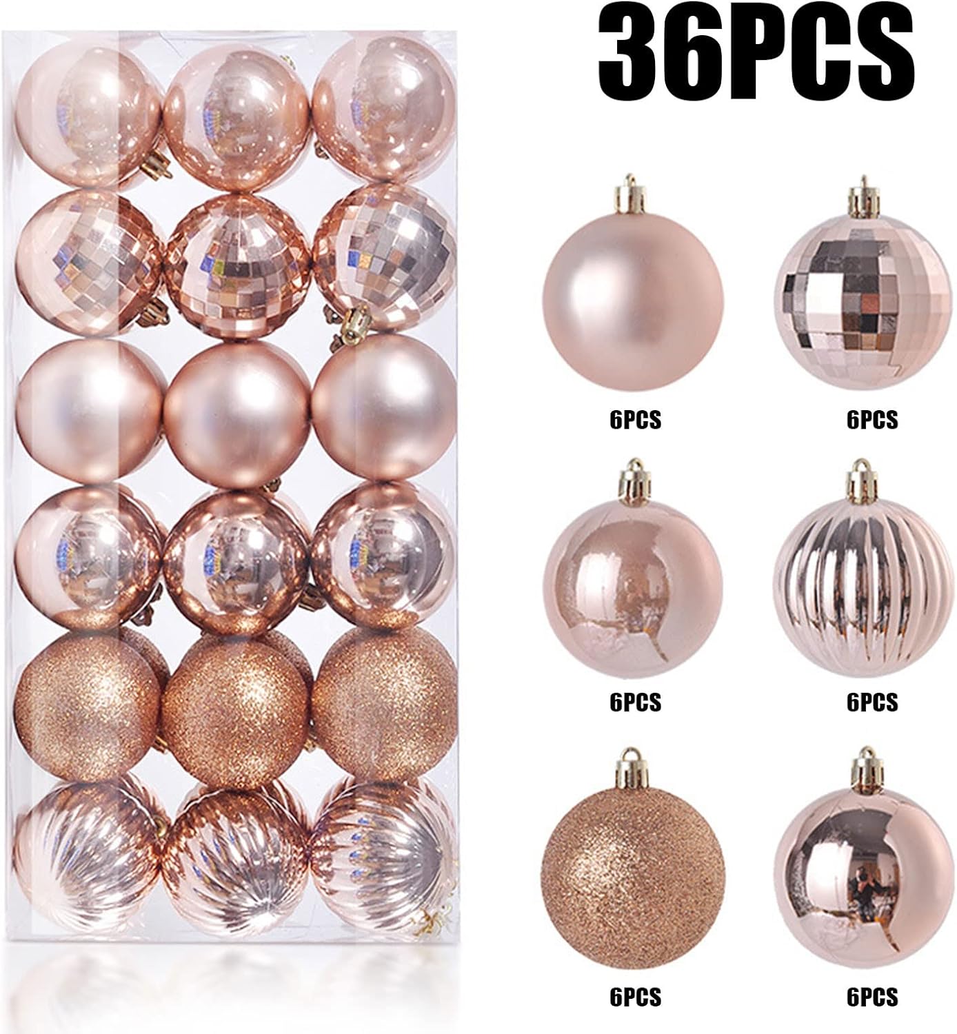 Unique Design: Christmas balls are made of quality plastic and painted in really pretty and bright colors. Each barrel contains 36 pieces, Christmas balls have three different surface materials that will make your Christmas tree look more beautiful. Including 3 styles: shiny, matte, glitter.
