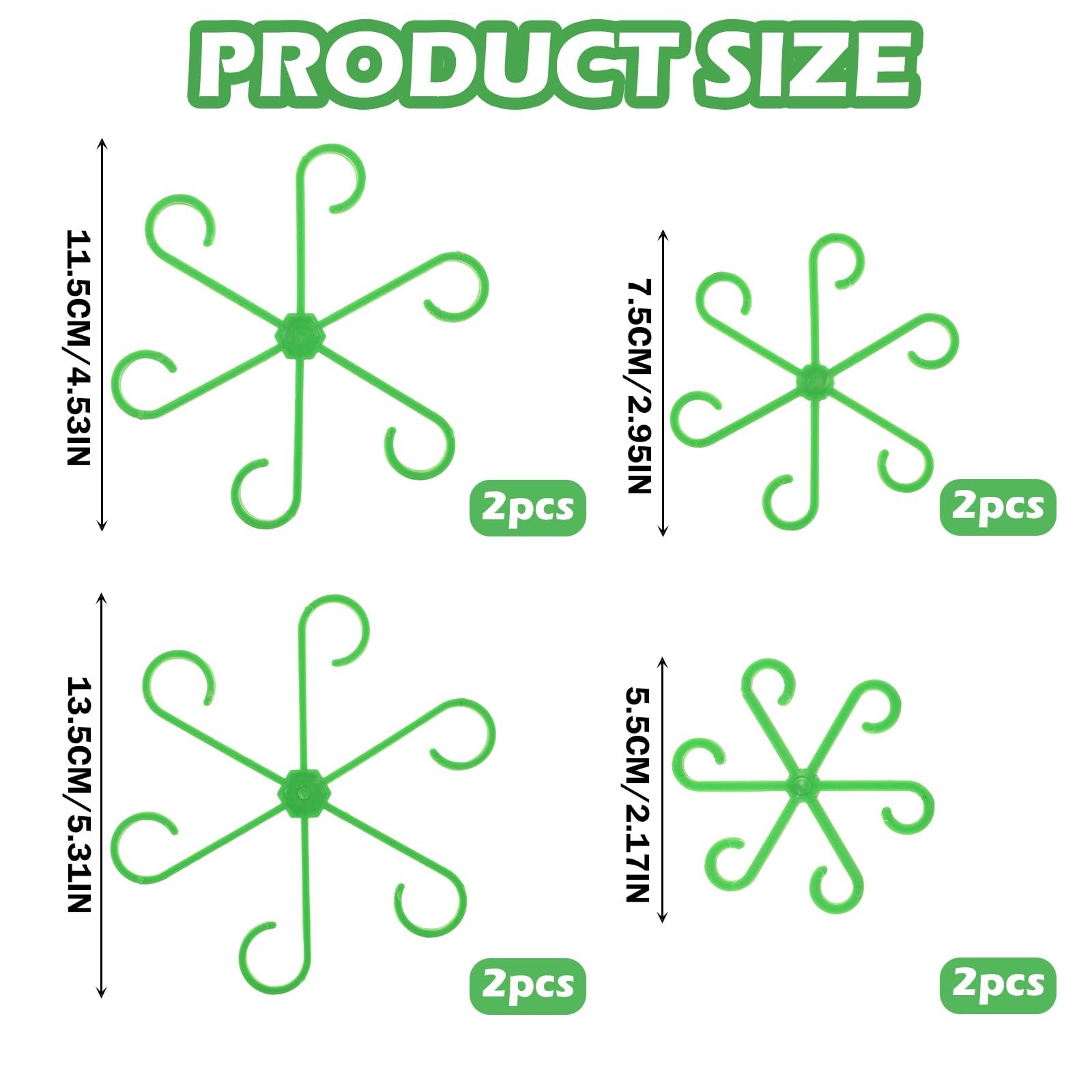 An additional set of 8 green plant stem supports (2.95inch and 2.17inch each) for smaller stems.